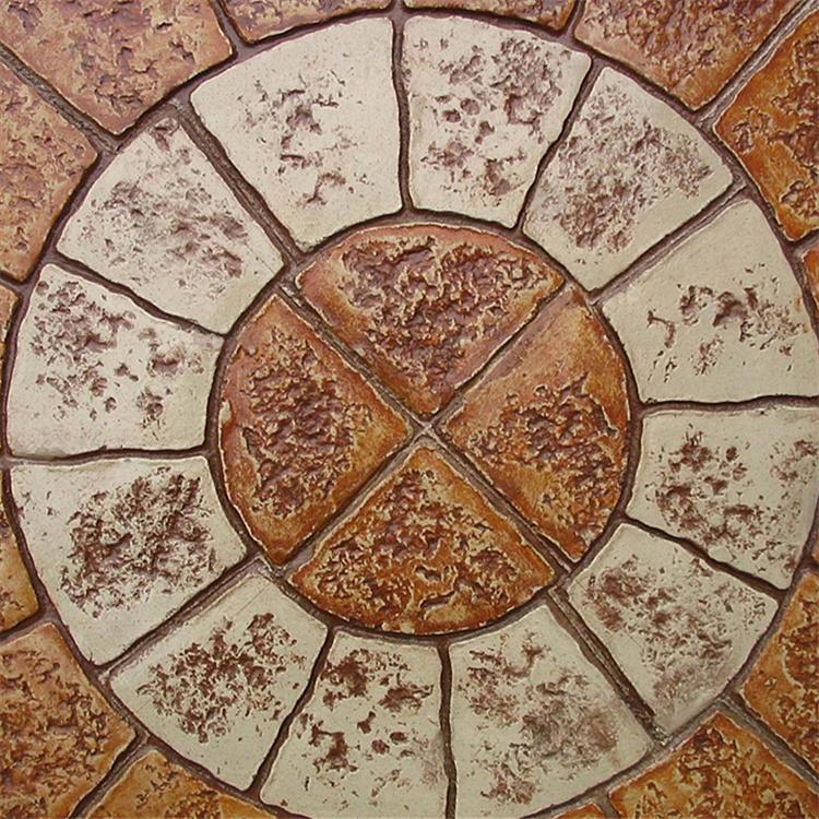 5、使用藝術(shù)地坪模具對(duì)地坪面層進(jìn)行紋理處理。藝術(shù)地坪模具應(yīng)配套使用,首先確定好紋理的分布方向,選好一塊模具放置的位置和角度,然后其它的模具依次緊貼一塊模具放置。彩色混凝土藝術(shù)地坪壓模采用壓模,壓模應(yīng)由技術(shù)較好的人員進(jìn)行作業(yè)以保證壓紋深度一致和模具放置的準(zhǔn)確性。