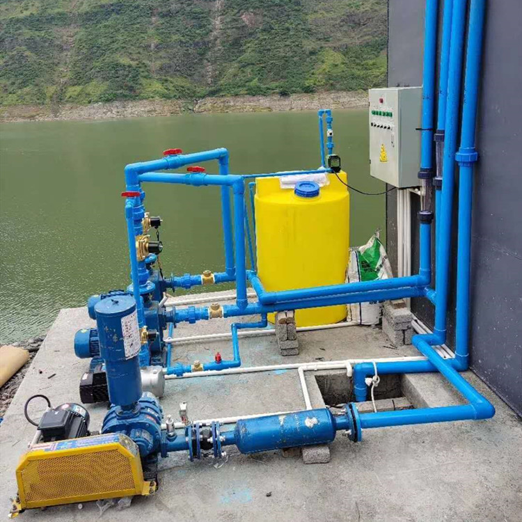 1、藥劑溶液的配置,把藥劑倒入加藥罐內(nèi),開始給水閥門注入清水,待放到一點量時,即關(guān)閉水閥門,控制藥劑濃度一般藥劑濃度在10%-20%之間。