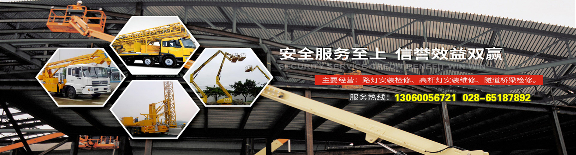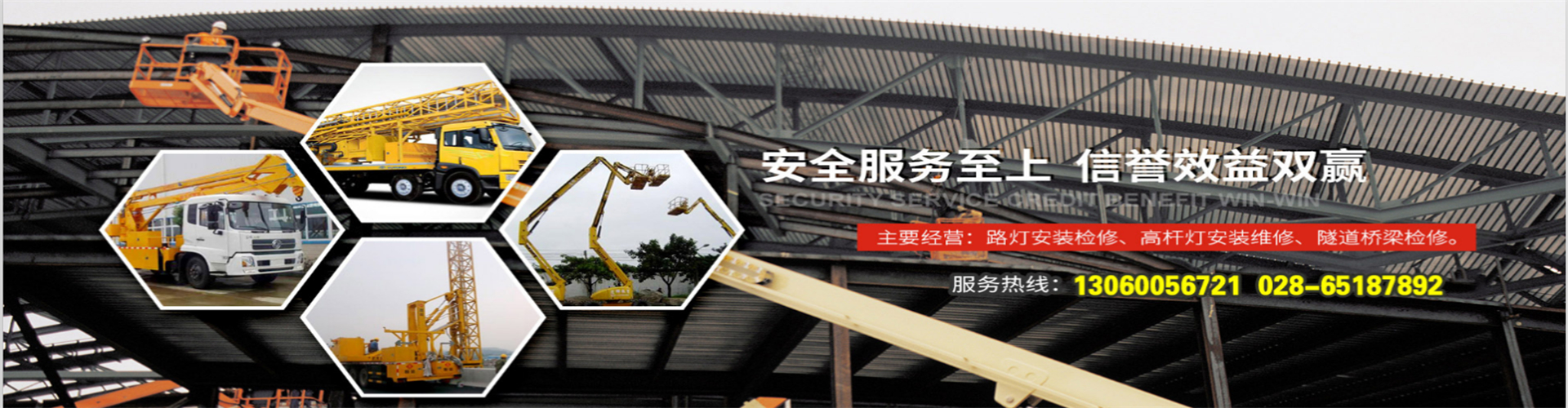 成都鑫英杰機(jī)械設(shè)備有限公司,主要業(yè)務(wù)有高空作業(yè)車,高空作業(yè)平臺,高空車,升降車,云梯車,登高車、吊籃車,路燈維修車,橋檢車,橋梁檢測車,隧道檢測車、吊車,舉高車、監(jiān)控安裝車、出租、租賃.成都鑫英杰機(jī)械設(shè)備租賃有限公司是經(jīng)運(yùn)輸局批準(zhǔn)工商局注冊成立的一家具有獨(dú)立法人資格的專業(yè)設(shè)備租賃公司,主要經(jīng)營:路燈維修車、電力安裝車、路燈安裝車、高空作業(yè)平臺、升降機(jī)、高空作業(yè)車出租,橋梁檢測,攝像頭安裝維修,吊車出租,叉車出租。本公司專業(yè)承接高空作業(yè)車、云梯車、吊籃升降車出租。服務(wù)經(jīng)營范圍:公司專業(yè)提供高空作業(yè)車出租、路燈維修車出租、高空作業(yè)平臺出租、升降機(jī)等機(jī)械設(shè)備租賃服務(wù)。高空作業(yè)車租賃公司,具有多種車載移動式高空作業(yè)設(shè)備租賃公司、是四川省僅有幾家正規(guī)高空設(shè)備租賃資質(zhì)公司之一。一:高空作業(yè)車,升降平臺:升降平臺,8到16米;高空作業(yè)車;12米到30米。種類齊全、性能穩(wěn)定,安全可靠。二:橋梁檢測車:12-24米,種類齊全,下降深度深跨護(hù)欄高,不中斷交通,作業(yè)效率高,操作方便,安全可靠性高。三:路燈安裝,監(jiān)控,戶外廣告牌安裝:承接各地區(qū)路燈,監(jiān)控,戶外廣告牌安裝更換,高桿燈安裝檢修,路燈安裝檢修,隧道檢修... [詳細(xì)介紹]
